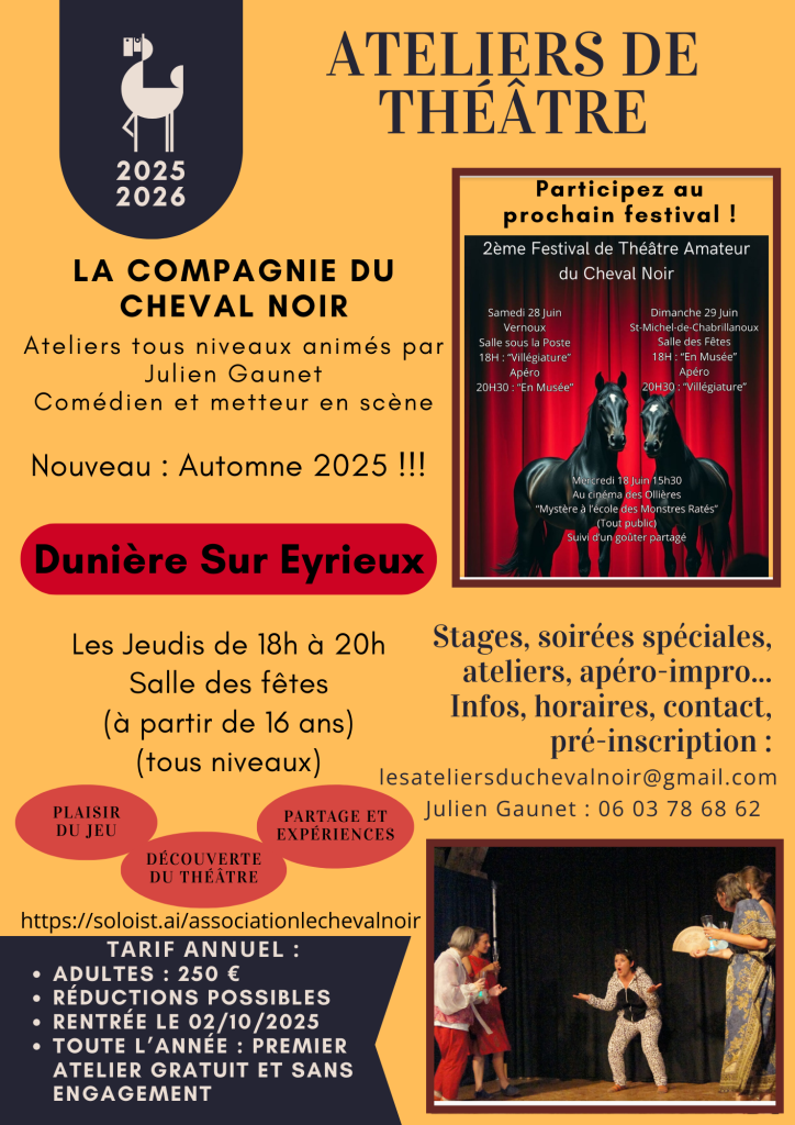 Atelier de théâtre le jeudi de 18h à 20h à la salle des fêtes de Dunière