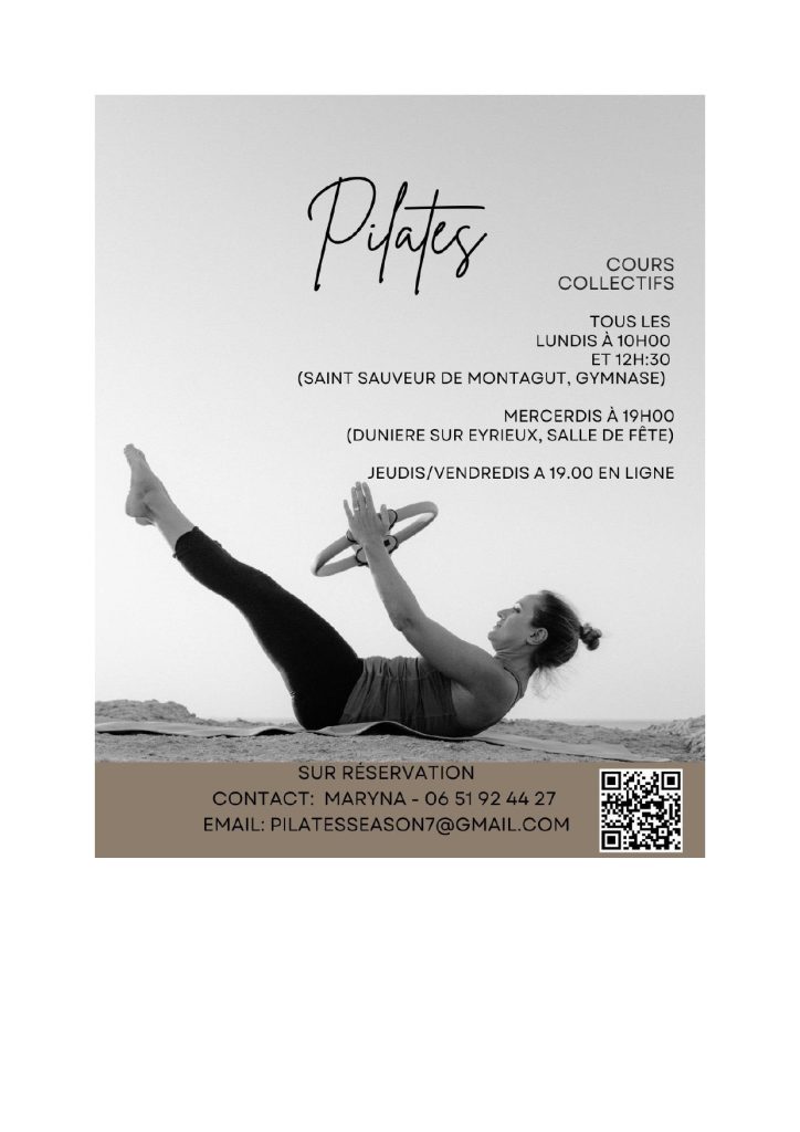 Cours collectifs de Pilates le mercredi à 19h à la salle des fêtes de Dunière-sur-Eyrieux