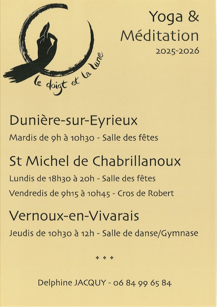 Yoga et Méditation le Mardi de 9h à 10h30 à la Salle des Fêtes de Dunière