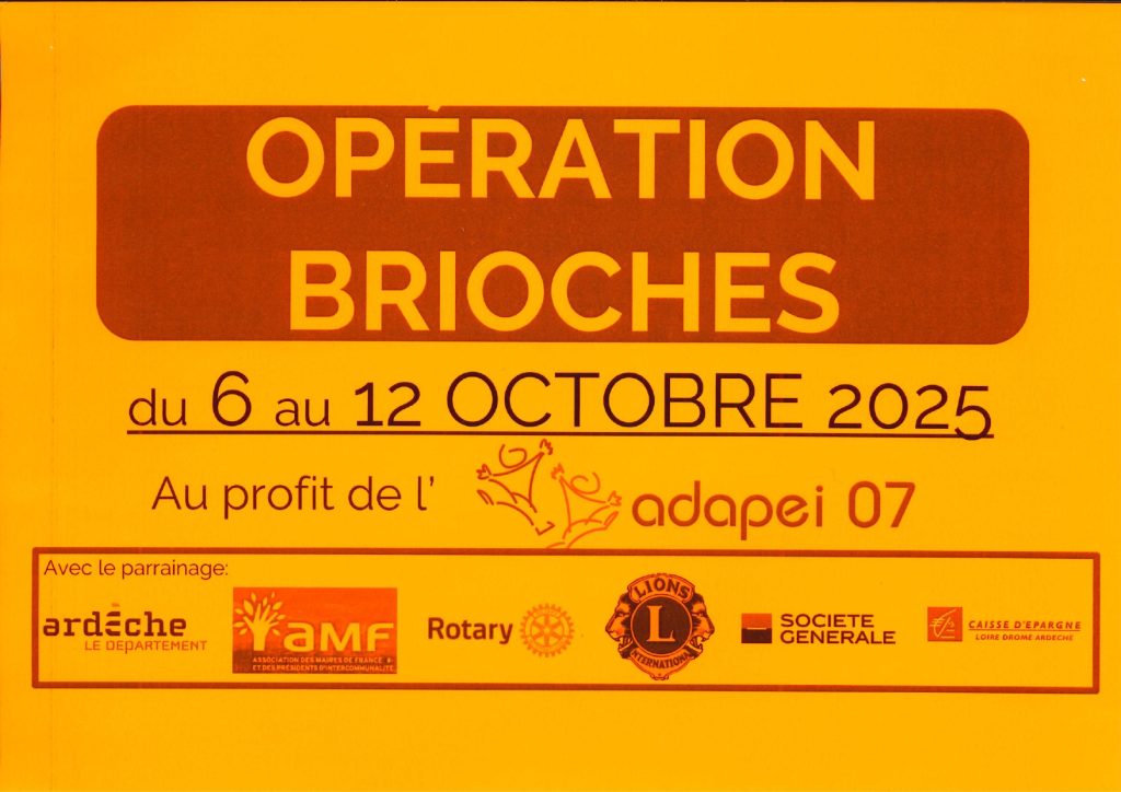 Opération brioche du 6 au 12 octobre 2025 au profit de l’ADAPEI 07