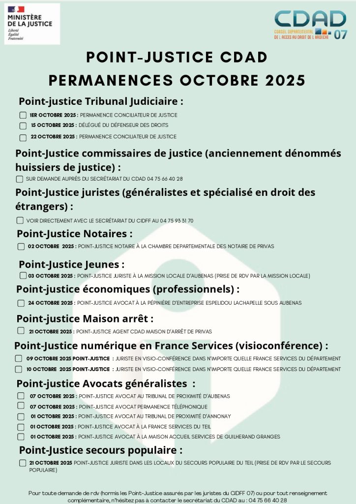 Permanences – Point-Justice – CDAD Octobre 2025